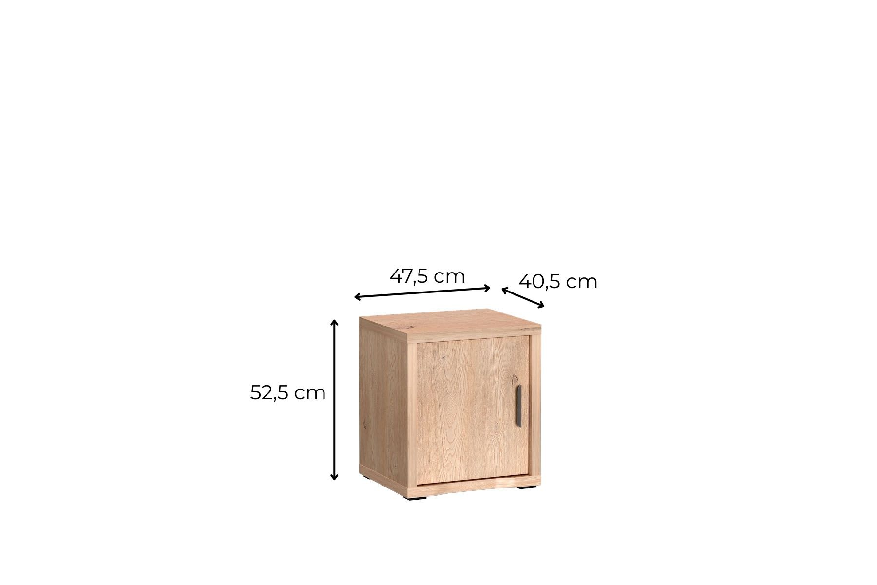 Behind the full door there is one practical shelf – ideal for books, small accessories or chargers, which are worth having at hand, but not necessarily in view. The closed form of the cabinet allows you to maintain visual order and tidiness at the bedside.