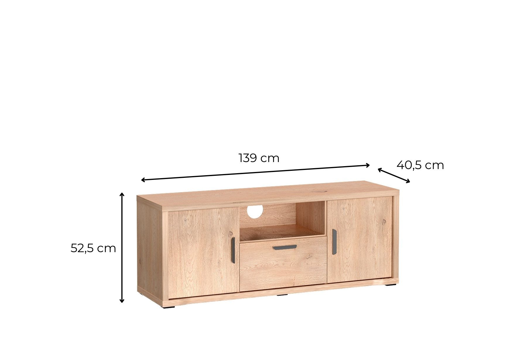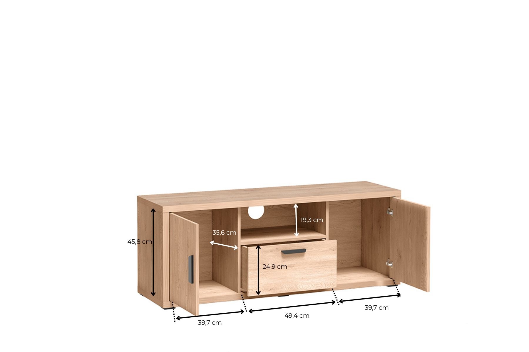 RTV GRANDE – 6 cabinet is a functional and stylish solution for those who value order and aesthetics in the multimedia area. The furniture with a compact form (ideal for smaller interiors) is distinguished by its well-thought-out layout: the central part is a drawer and an open niche – ideal for a set-top box, console or speaker, and on the sides there are two cabinets with shelves to accommodate additional accessories, discs or textiles.