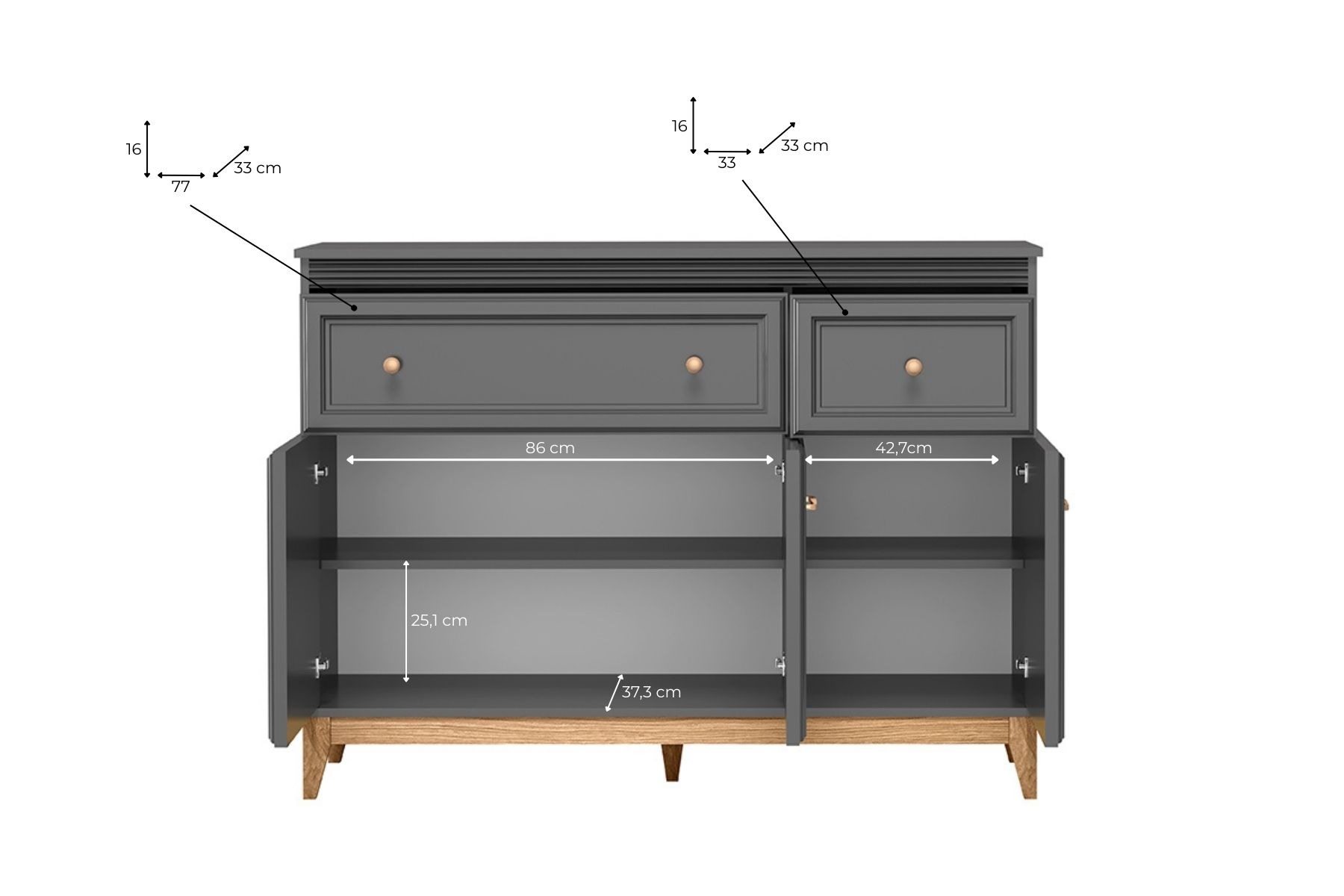✅ Fronty MDF o grubości 22 mm – trwałe, odporne na uszkodzenia.