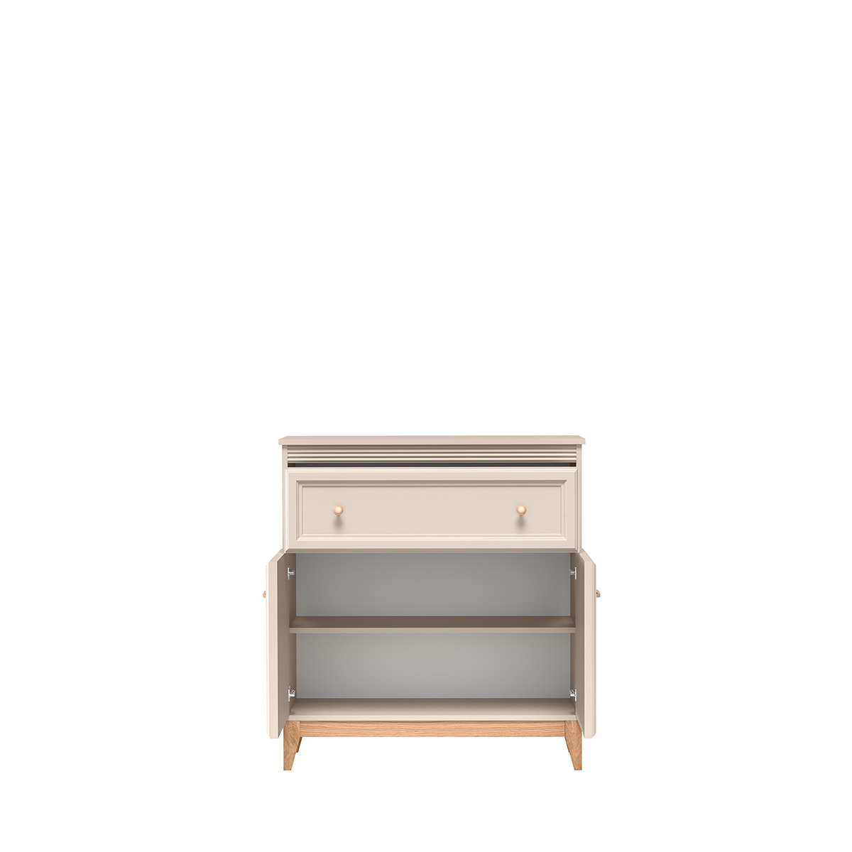 Elegance, functionality and timeless style – WINDSOR W-18 half-wardrobe with mirror is a perfect addition to the hallway, which combines the aesthetics of classic forms with modern workmanship. It is distinguished by its delicate cashmere color, natural wood and details that bring calm and harmony to the interior.