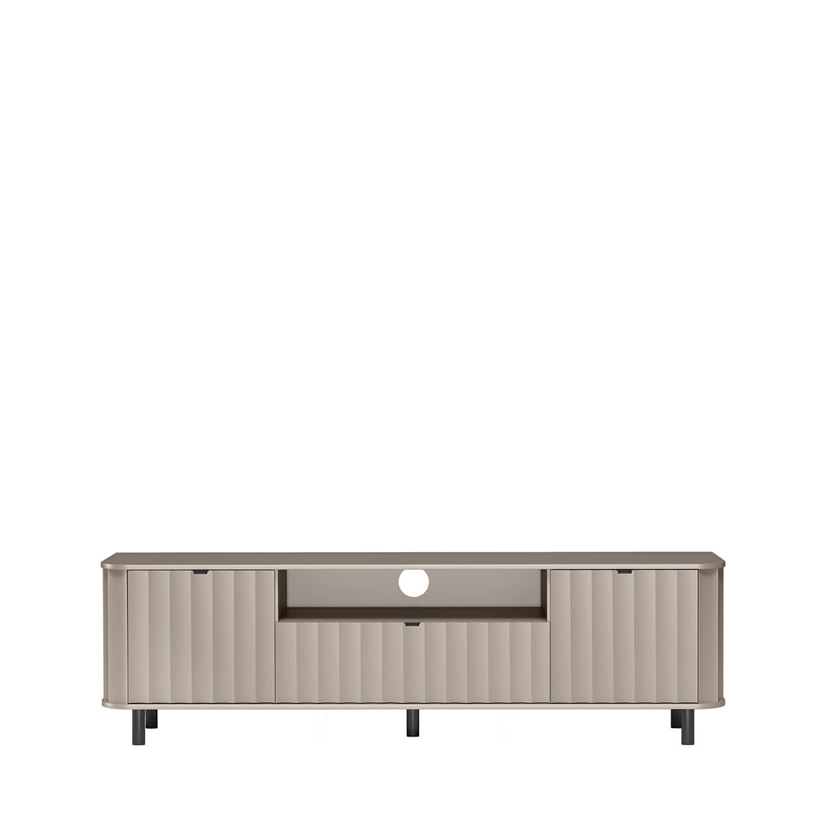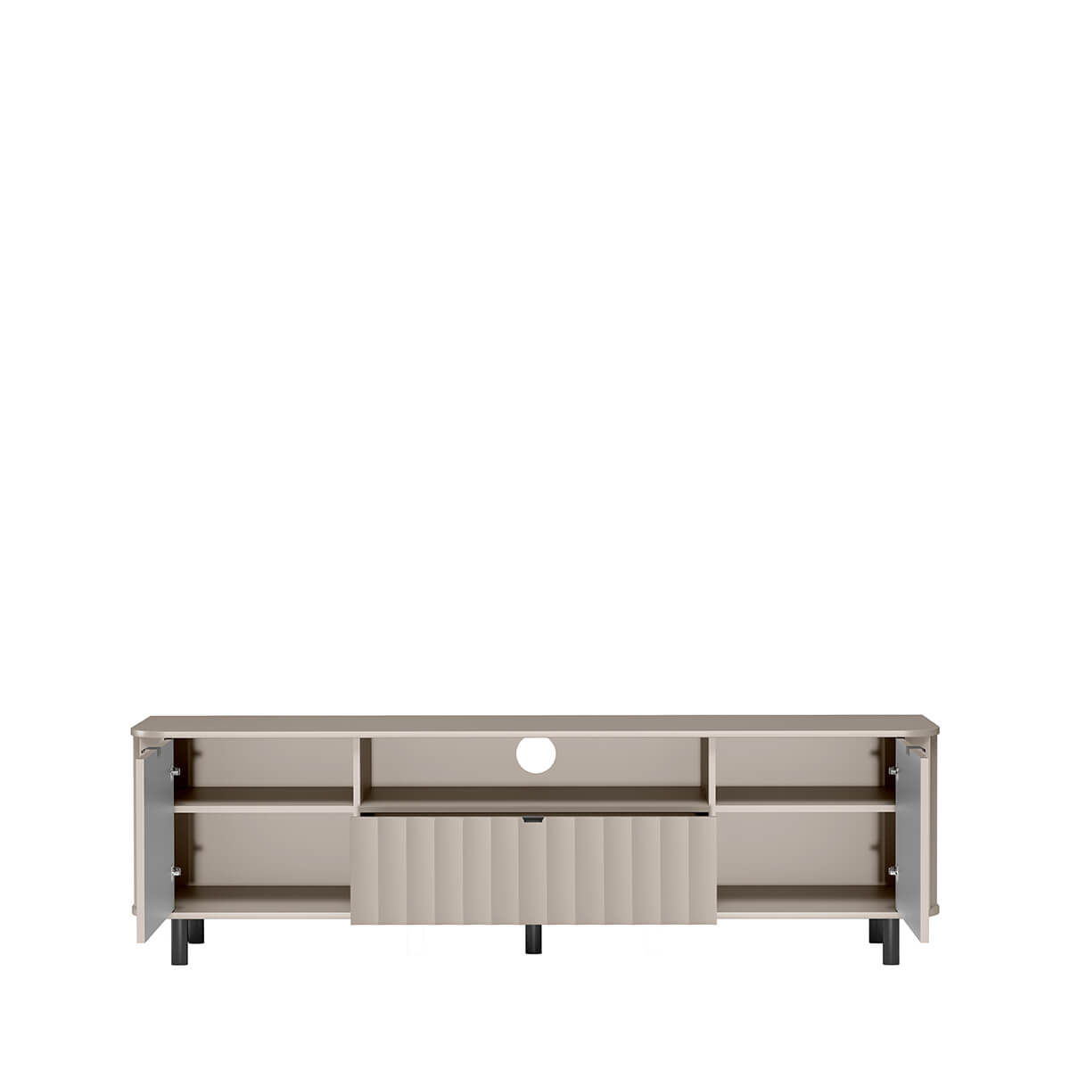 The modern RTV cabinet in this series was designed with everyday comfort in mind – the wide top will accommodate a large screen, and below it you will find thoughtful storage space: recesses for set-top boxes, a console or soundbar, as well as lockable cabinets for small items you want to keep close at hand, but not in view.