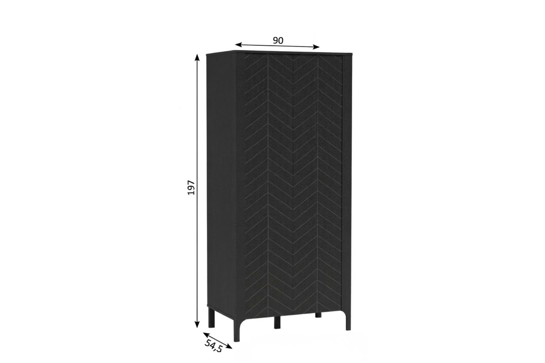 Discover the unique MM-7 cabinet, which combines minimalist elegance with a practical storage solution. Its black design is distinguished by a front with a geometric herringbone pattern, giving the interior a modern, stylish touch. Thanks to its solid workmanship and attention to detail, the closet fits perfectly into modern and industrial arrangements. MM-7 closet was designed with maximum functionality in mind: Spacious hanging space – ideal for storing longer clothes, shirts or jackets. Four shelves – provide space for folded clothes, accessories or decorative boxes. Additional lower space – perfect for shoes, bags or other everyday items. Product features: high quality furniture board in matte finish. Deep black with a delicate, stylized pattern. Optimal proportions for most rooms. Modern, minimalist with a unique touch. MM-7 closet is an excellent choice for those who appreciate design and functionality. Its distinct form will make it a focal point of any bedroom, hallway or dressing room.