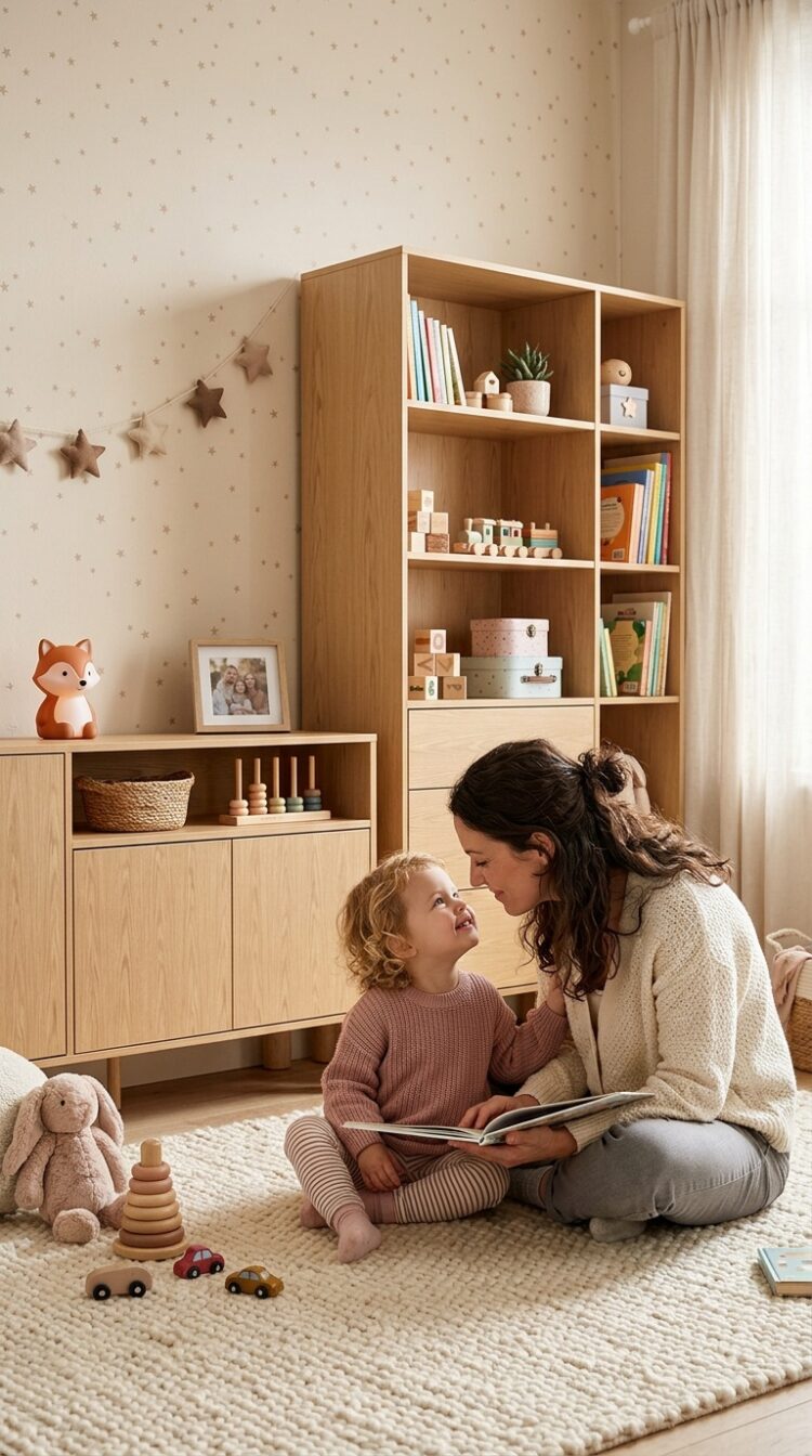 Pokój dziecka — SANDEN to pierwsza kolekcja JARSTOL, która tak naturalnie wpisuje się w świat najmłodszych. Naturalne drewno, łagodne formy bez ostrych krawędzi i push to open, który dziecko obsługuje jednym palcem. Komoda SN-2 i regał SN-8 to szczególnie trafiony wybór — pojemne, bezpieczne i na tyle piękne, że rosną razem z dzieckiem przez lata.