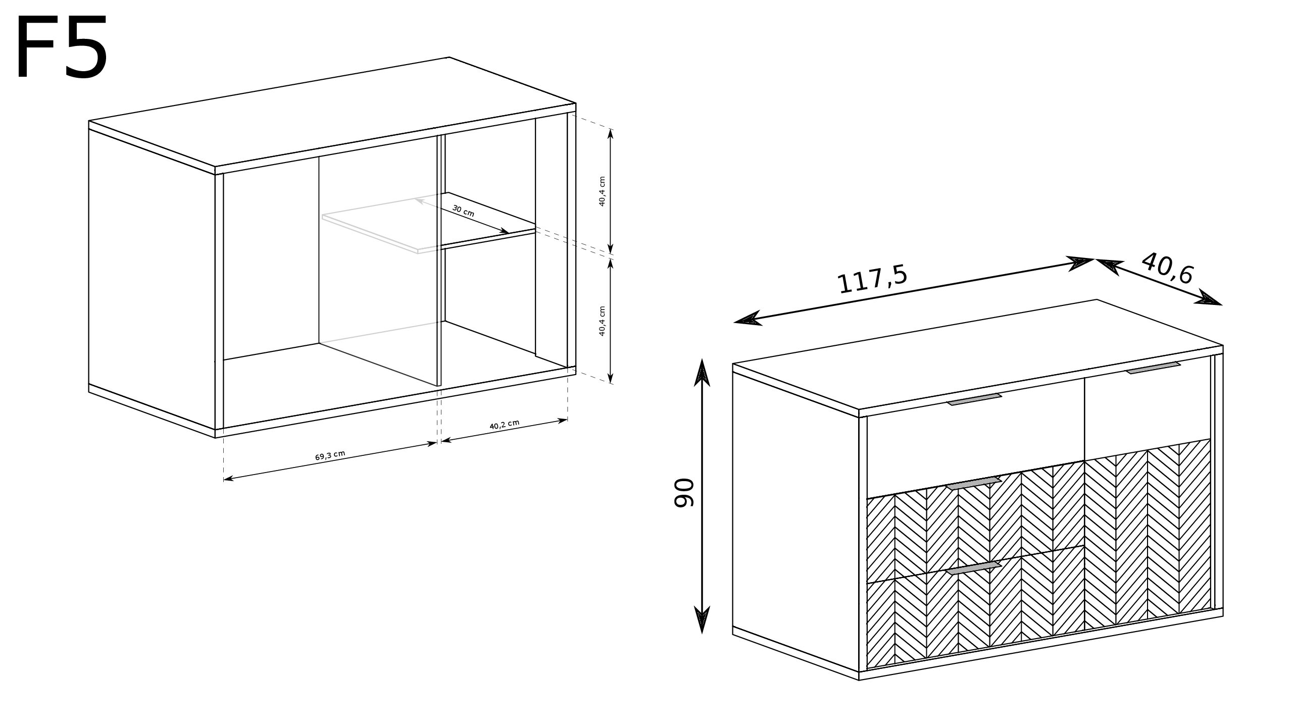 Funkcjonalna komoda z kolekcji FONTI. Pomimo swoich mniejszych rozmiarów pomieści sporo rzeczy! Po lewej stronie znajdziemy 3 pojemne szuflady na ubrania, bielizne, drobiazgi a po prawej stronie szafkę z półką, która dzieli w niej przestrzeń na pół.