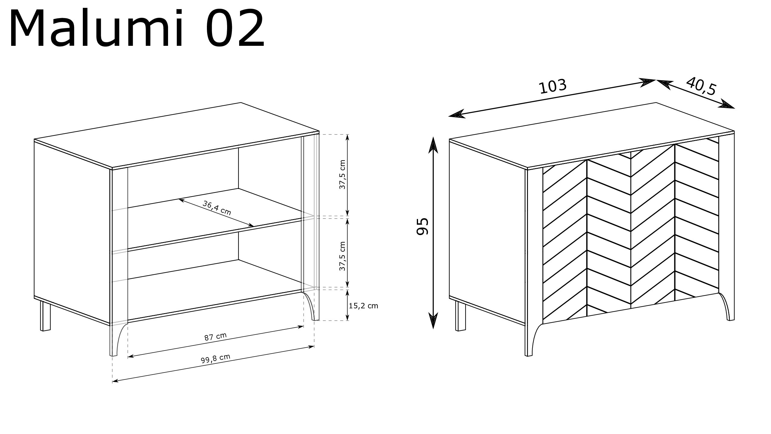 Dodaj elegancji i funkcjonalności do swojego wnętrza dzięki tej wyjątkowej szafce o nowoczesnym designie. Wykonana z wysokiej jakości materiałów, charakteryzuje się ciemnym, matowym wykończeniem oraz subtelnym wzorem w jodełkę, który dodaje jej klasy i stylu. Wyrafinowany wzór w jodełkę na frontach podkreśla minimalistyczny charakter mebla. Przestronna półka wewnątrz zapewnij dużo miejsca do przechowywania Twoich rzeczy. Doskonała do mniejszych przestrzeni, takich jak przedpokój, salon czy sypialnia. Stabilna konstrukcja i trwałe materiały gwarantują długowieczność mebla.Ten mebel jest nie tylko praktyczny, ale również estetycznie dopasuje się do każdego wnętrza, od nowoczesnych przestrzeni po te urządzone w stylu klasycznym.