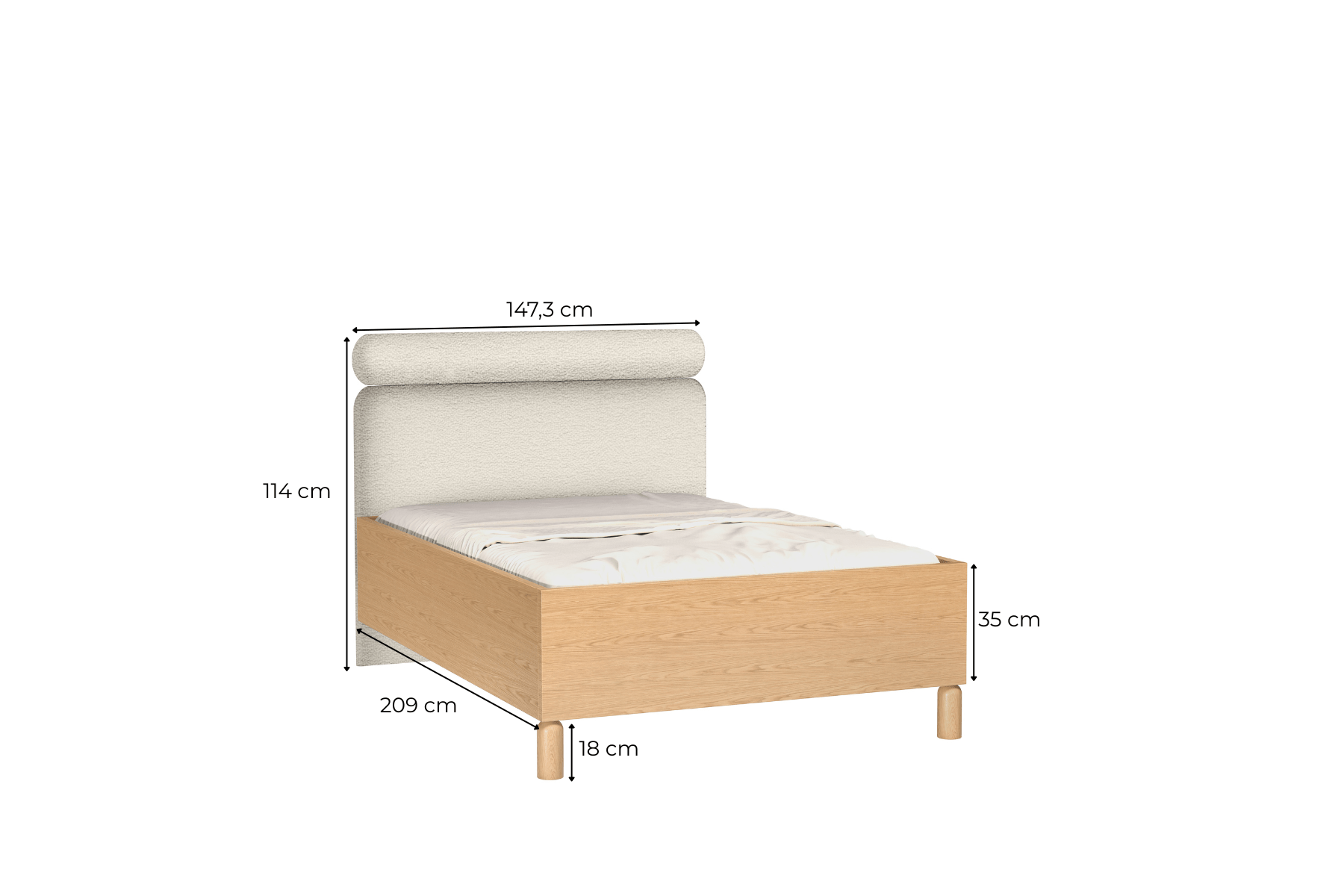✅ Nogi: drewniane, wysokość 18 cm