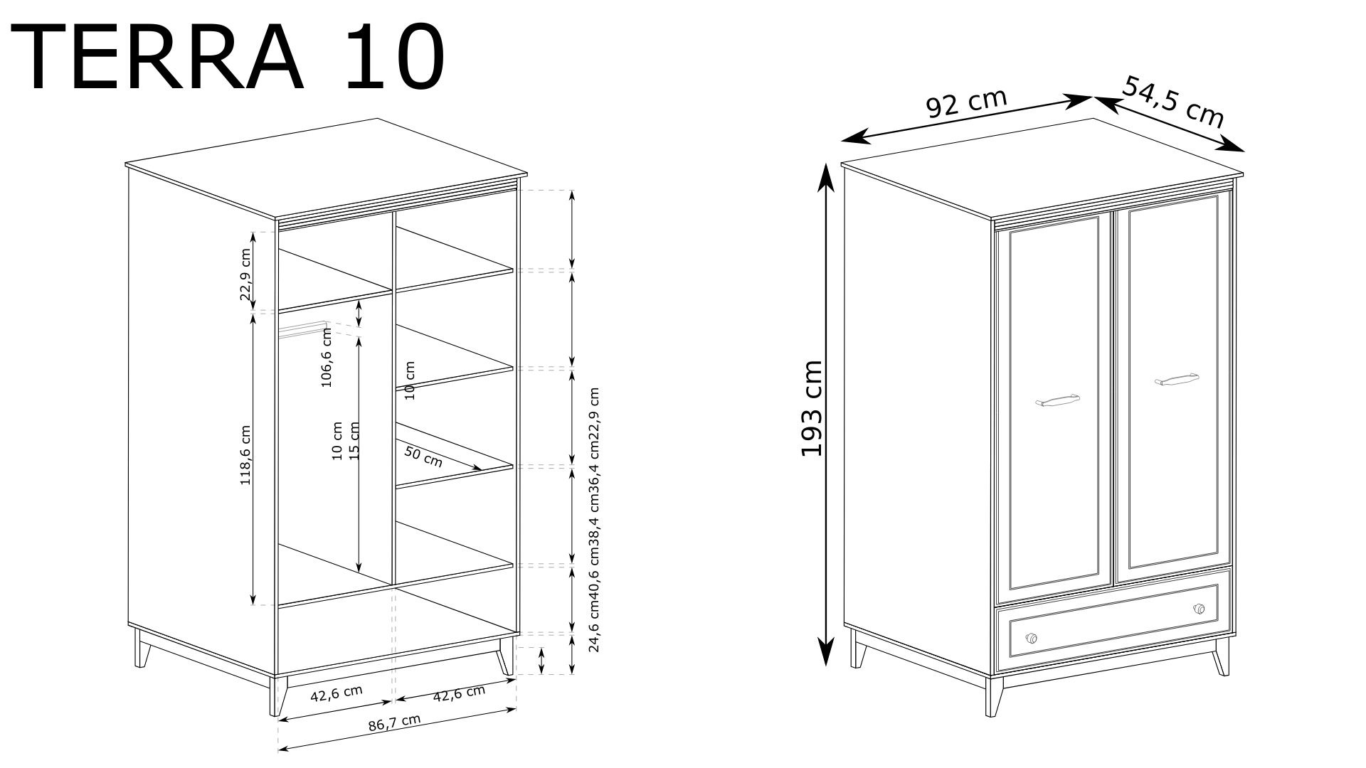 ✅Wysoka, kompaktowa szafa – idealna do małych przestrzeni (92 cm szerokości, 193 cm wysokości)