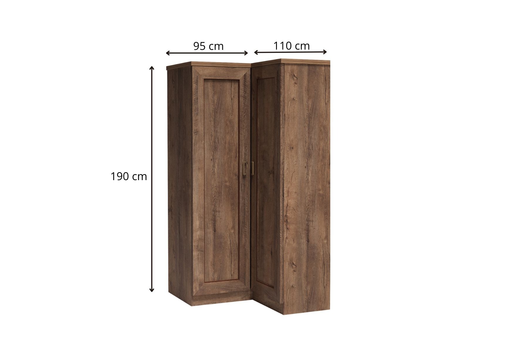 ✅ Design: Dwudrzwiowa szafa z wyraźnym dębowym usłojeniem, idealnie wpasowująca się w kąt pomieszczenia.