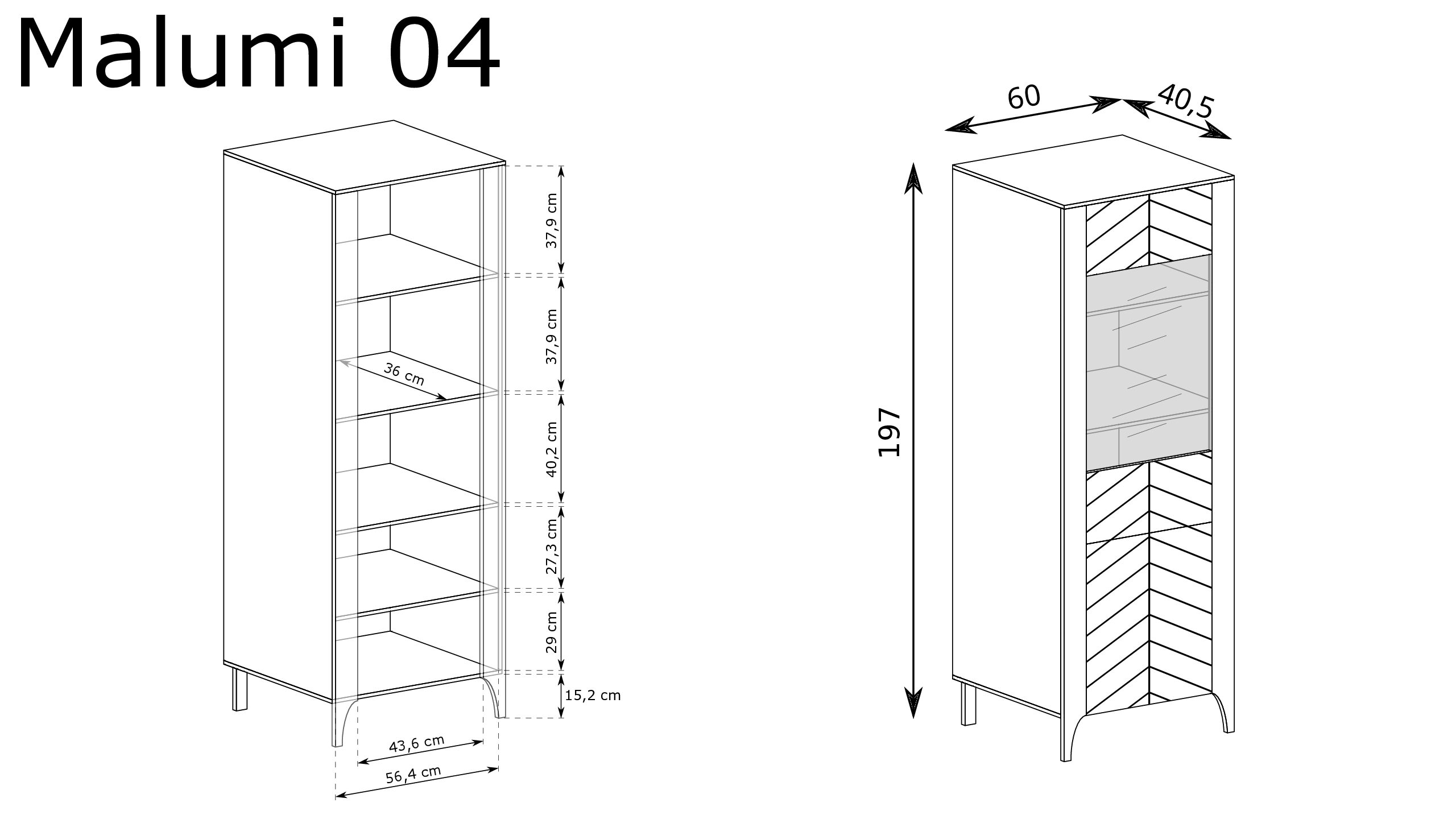 Witryna Malumi to połączenie klasycznego designu z nowoczesnym akcentem. Jej charakterystyczne fronty nadają meblu wyjątkowego charakteru. Za szklanymi drzwiczkami znajdziesz cztery przestronne półki, dzięki którym możesz wyeksponować swoje ulubione przedmioty, a w dolnej części schować wszystko, co chcesz mieć pod ręką. Witryna doskonale sprawdzi się zarówno w salonie, jak i jadalni.