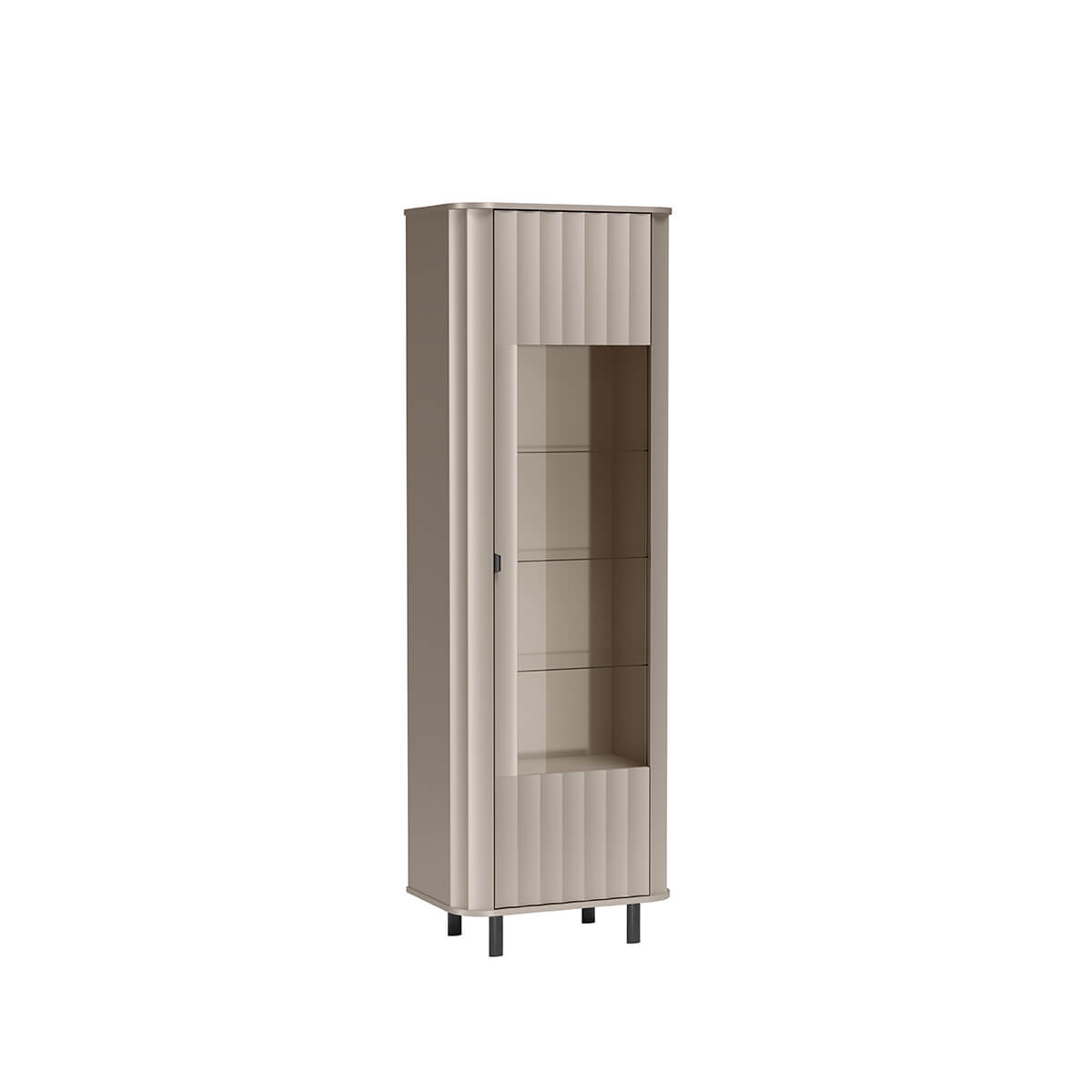 Elegancka i praktyczna witryna do nowoczesnych wnętrz NOVADO-4 to półwitryna, która łączy stylowy wygląd z funkcjonalnością. Trzy szklane półki pozwalają pięknie wyeksponować ulubione dekoracje, a zaokrąglone krawędzie i metalowe detale nadają całości lekkości i nowoczesnego charakteru. Dostępna w dwóch kolorach – clay gray i bieli.