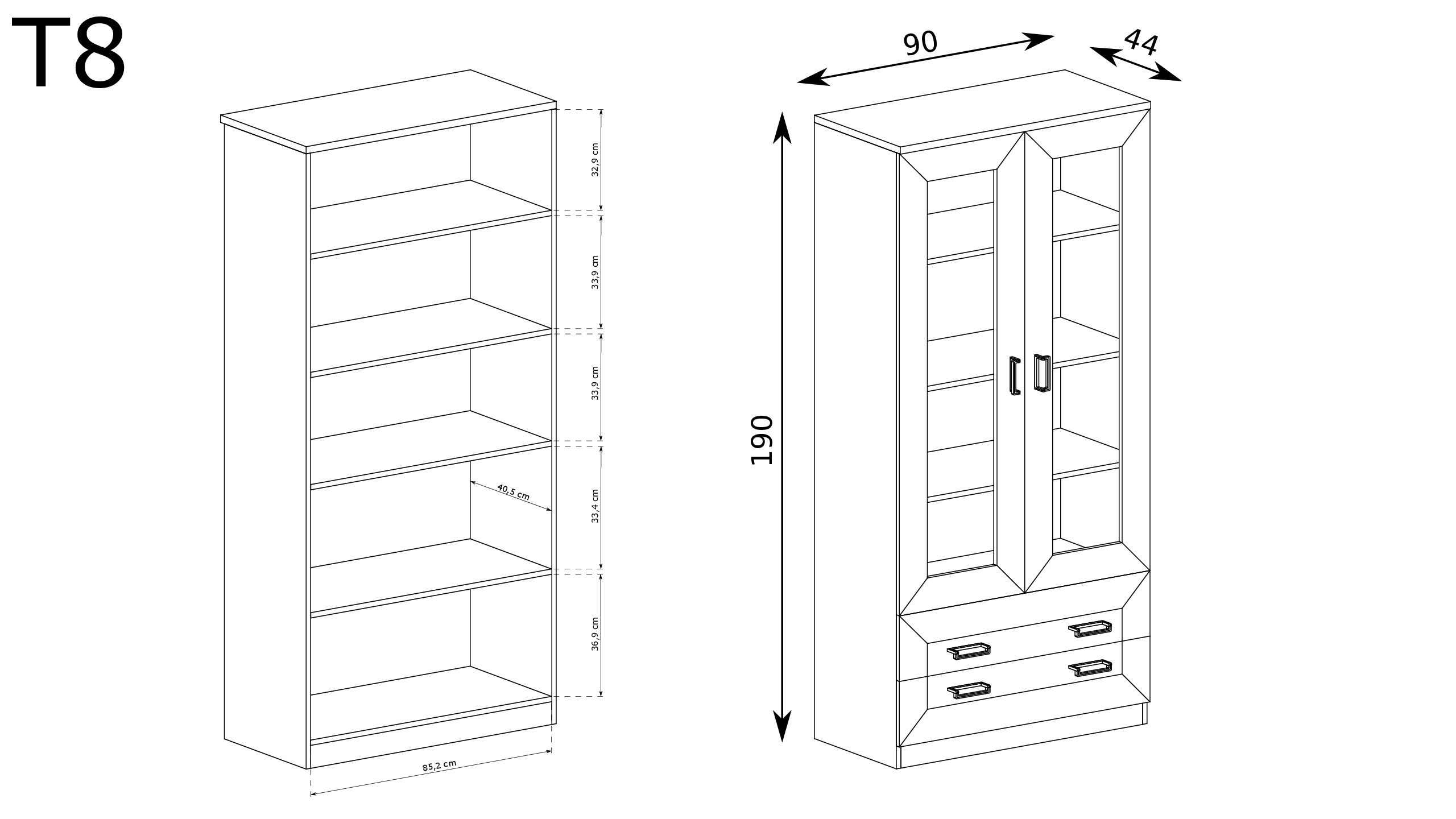 Witryna dwudrzwiowa to kolejny mebel z kolekcji TADEUSZ. Górna część to przeszklone drzwi z eleganckim wzorem. Dolną część zapełniają dwie szuflady, w których możemy przechowywać np. sztućce lub serwetki. Witryna sprawdzi się w salonie i w jadalni, eksponując rzeczy najbardziej dla nas cenne. Całości dopełniają eleganckie, metalowe uchwyty. Dostępna w dwóch wybarwieniach.