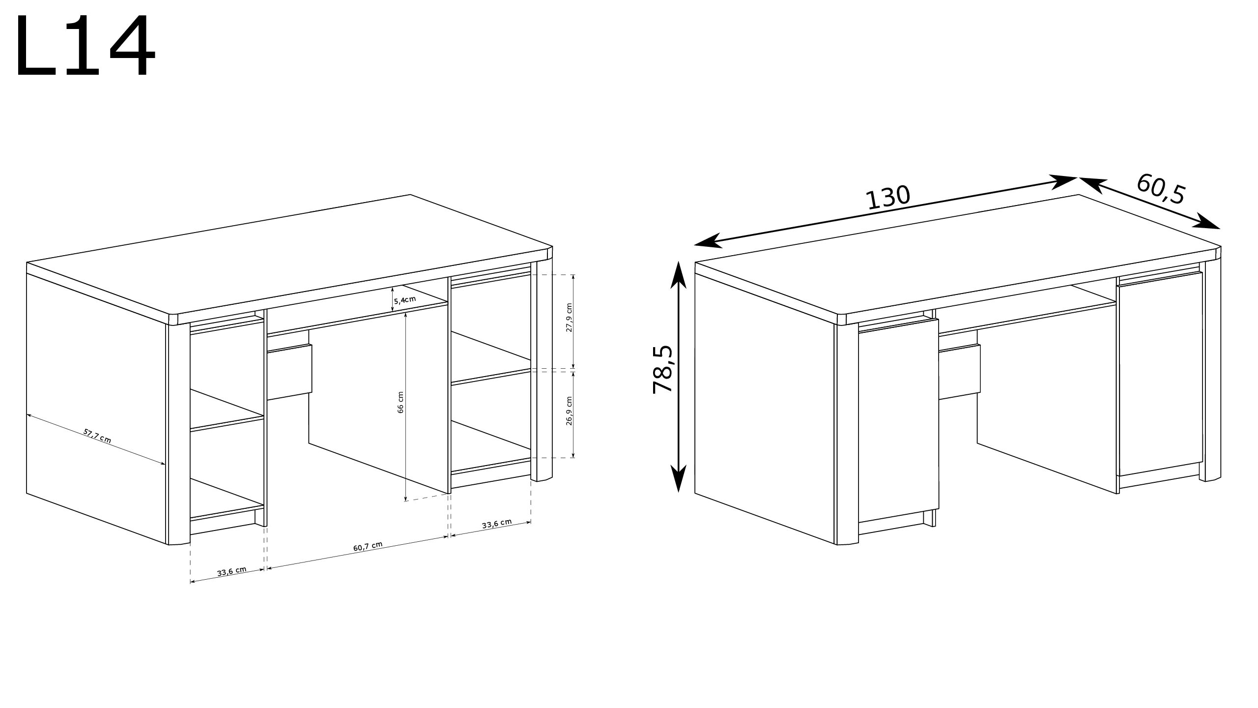 Biurko z nowej kolekcji livinio. Solidne, bardzo wytrzymałe. Posiada dwie szafy, w których znajdziemy półki. Jest też miejsce na wysunięcie klawiatury, czy też podręczne dokumenty i coś do pisania, jeśli postawimy laptopa na blacie. Drzwi szaf posiadają zawiasy z cichym domykiem. Biała płyta w połysku na frontach jest czymś niespotykanym. Taki mebel wzbogaci pokój i umili w nim pracę. Biurko może służyć również jako toaletka do sypialni. Wyobraźcie sobie ciepłe, stylowe pomieszczenie, w którym umieścimy toaletkę, a nad nią powiesimy lustro z tej samej kolekcji. Taki zestaw będzie świetnym rozwiązaniem w przypadku szykowania się do wyjścia wieczorem, czy nakładania kremu na dzień.