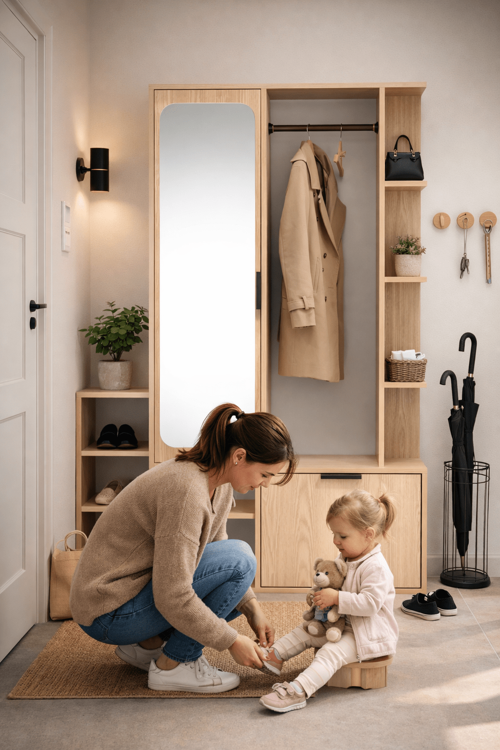 ✔ Zamykana szafka na buty – dyskretne przechowywanie obuwia codziennego użytku
