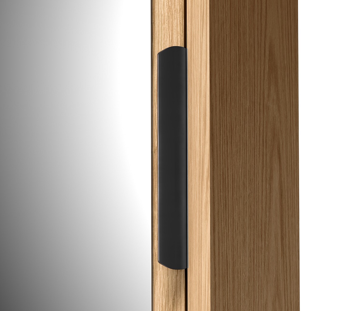 Duże lustro optycznie powiększa przestrzeń i jest niezbędne przed wyjściem z domu. Metalowe uchwyty dodają meblowi nowoczesnego charakteru, a wysoka jakość wykonania gwarantuje długotrwałe użytkowanie.